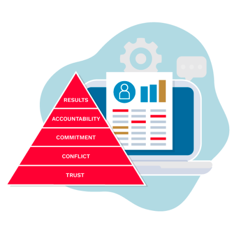 The assessment evaluates how each team member approaches the five key behaviors of Trust, Conflict, Commitment, Accountability, and Results. It combines computer-adaptive testing and sophisticated algorithms to deliver precise, personalized insights.